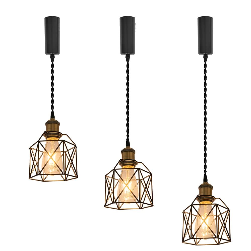 KIVEN 3個パック ブラック 長さ調節可 コード収納カップ付き インテリア照明 北欧 おしゃれ インテリア用 吊り下げ ライト E26 キッチン LED 電気 ダクトレールライトri 7b213d3d