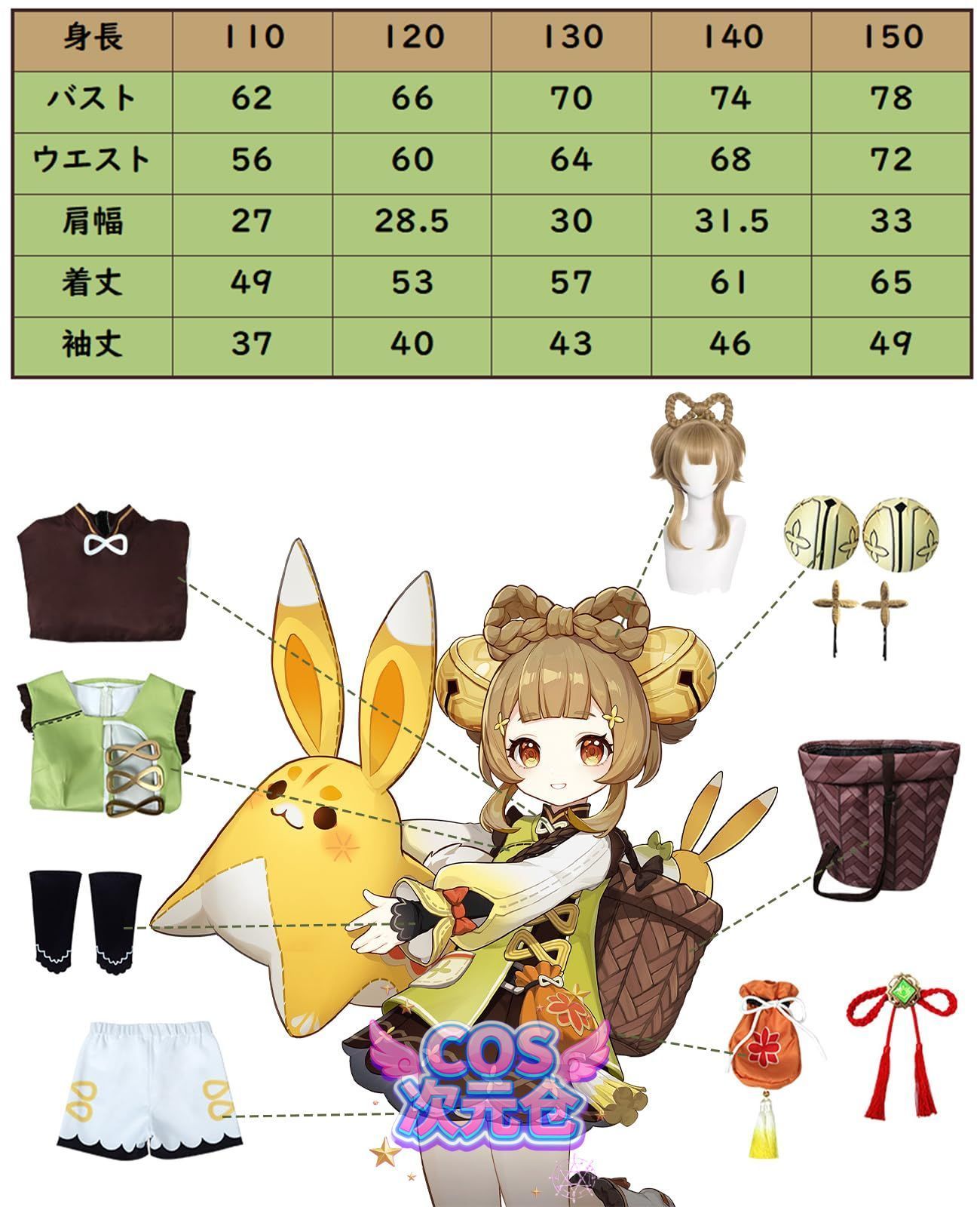ヨォーヨ ウィッグ付き NOKIJP 原神 子供 コスプレ衣装 ウィッグ付き ナヒーダ ヨォーヨ クレー コスプレ