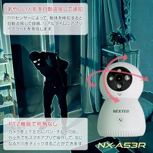 乳幼児やペットの見守りに最適なネットワークカメラ NX-A53R A 500万画素 PTZ機能搭載 監視カメラ 自動追尾機能搭載 IPカメラ ワイヤレス セキュリティカメラ 9b58835d