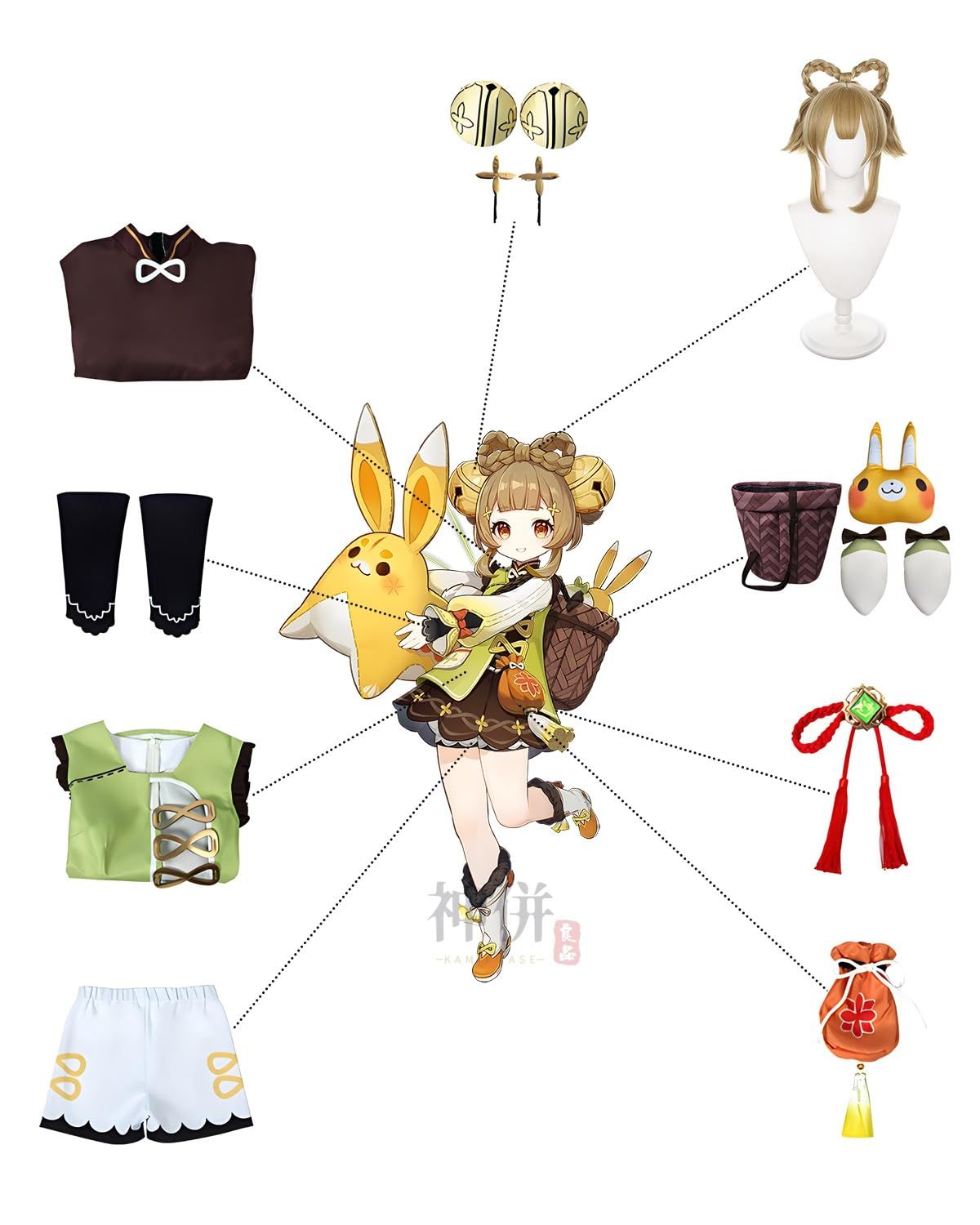 神併 ヨォーヨ コスプレ ウィッグ付き 幼い弟子 原神 コスプレ衣装 フルセット コスチューム 大人用 仮装 文化祭 Genshin Yaoyao cosplay ヨォーヨ ウィッグ付きXS