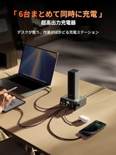 【6台まとめて同時に充電】スマホ・タブレット・ゲーム機など最大6台を同時充電可能(合計320W)。家族やオフィスでの複数端末の充電をこれ1台で解決。