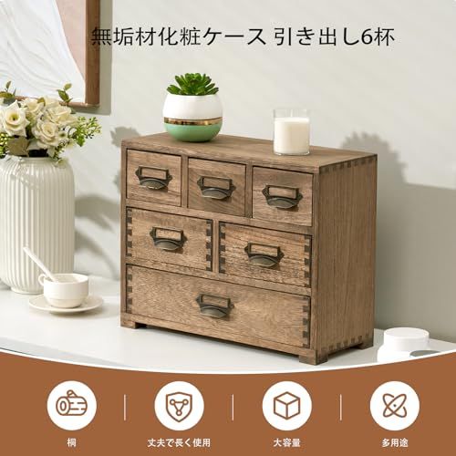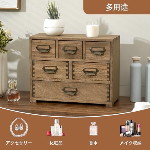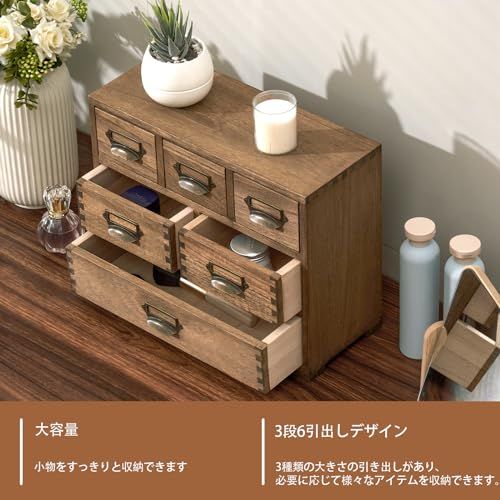 KIRIGEN ミニチェスト 卓上収納 小物収納 引き出しチェスト 3段6杯 職人手作り ブラウン TQ-3D6CG-DBR a2a9dad0