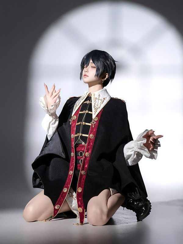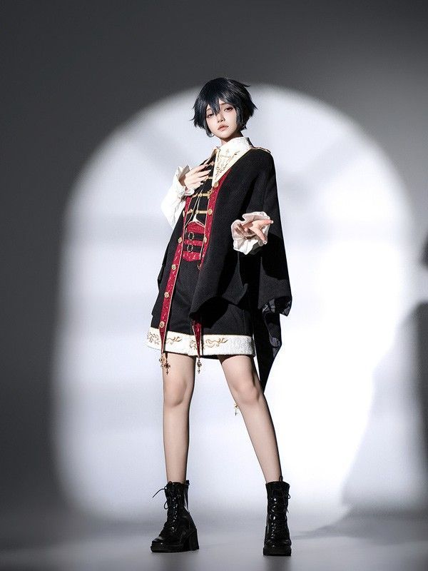 王子風ロリータ 吸血鬼風 少年装 魔法使い風 3点セット ゴスロリ 長袖 上品 エレガント 男装 王子装 王子系 フリル レトロ風 ロリィタ ステージ コスチューム 仮装 男女兼用 宮廷服 舞台 衣装 ステージ イベント 文化祭 学園祭 パンツ ブラック