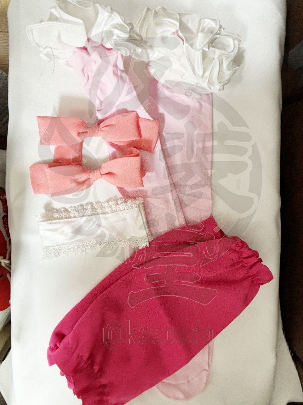 上着、肩部装飾、スカート、アームカバー、靴下、髪飾り