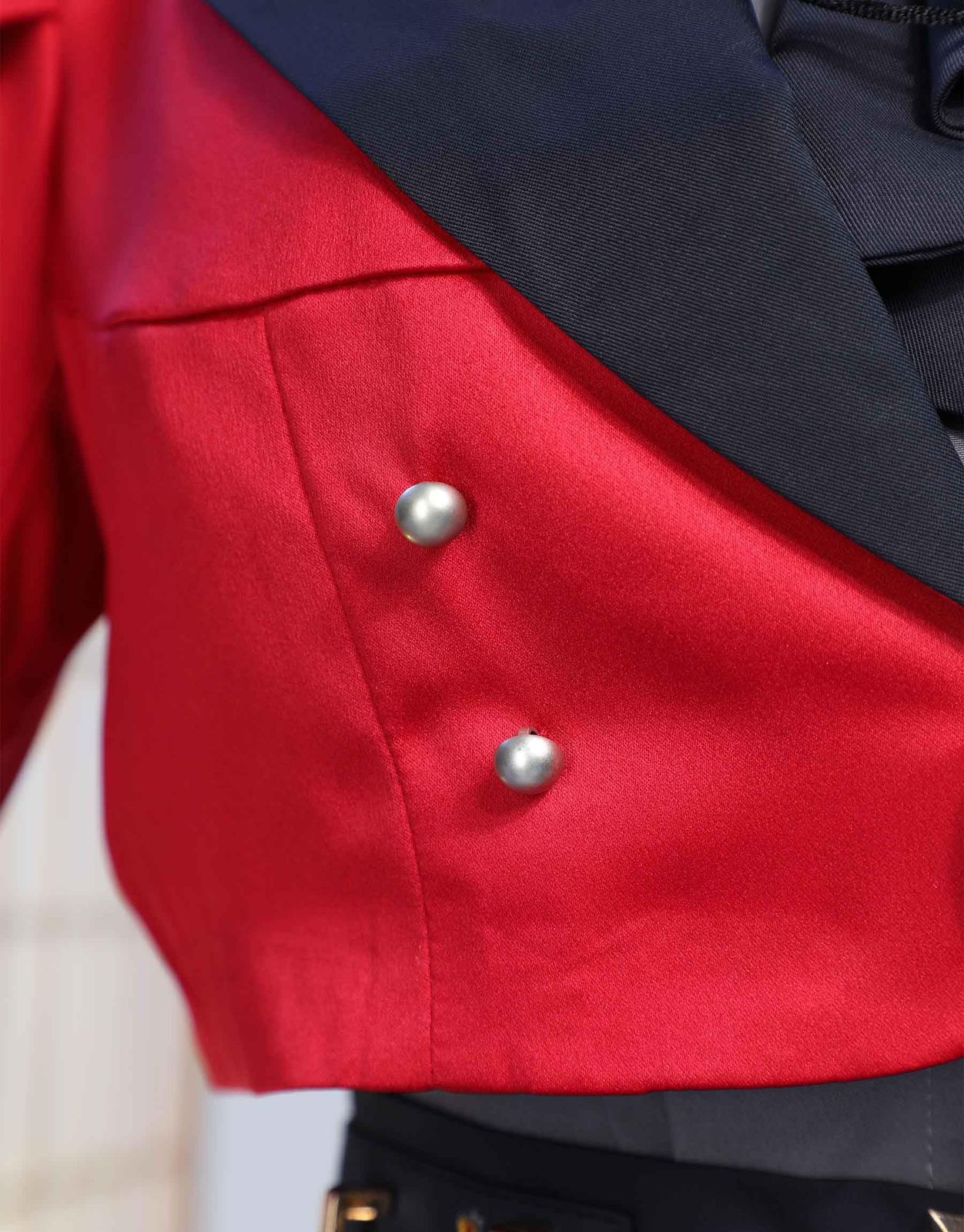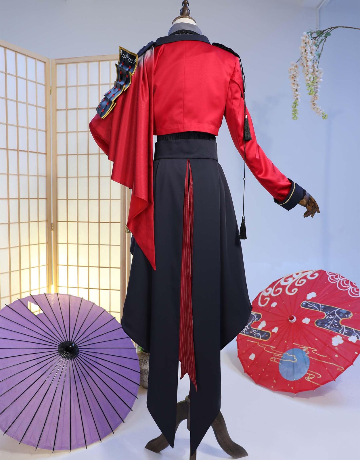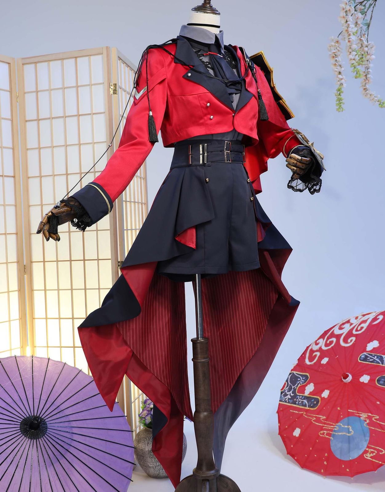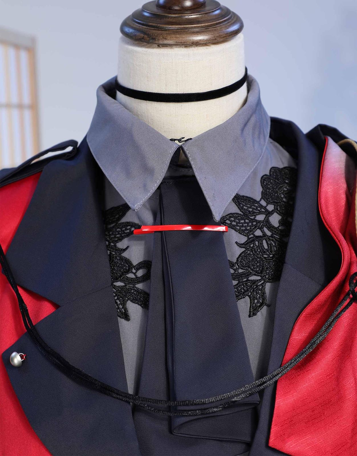 Miccostumes レディース 大人 男士 華奢な少年風 男の娘風 アニメ ゲーム コスチューム コスプレ コス かっこいい かわいい 萌え キュート 衣装セット 仮装 変身 変装 長い赤ゴシックスーツ 短パン 黒レース 赤い薔薇 帽子 M