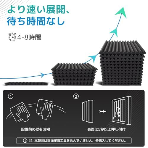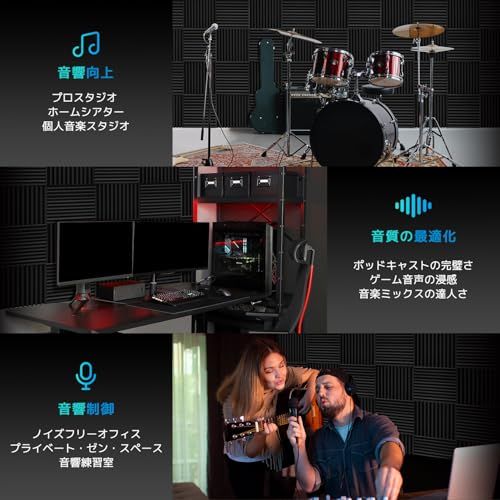 簡単にインストール可能の吸音パネル:この柔軟で専門グレードの吸音フォーム製の吸音パネルは、壁掛け式の理想的な防音材料です。専用の接着剤と組み合わせて使用し、5秒以上の押さえることでしっかりと固定され、シームレスなインストールが可能です。ただし、本製品は接着剤を含んでいないため、別途購入が必要です。