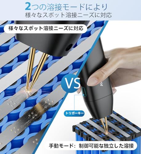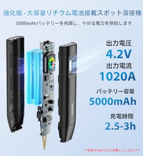 5000mAh大容量:H5スポット溶接機の内部構造は全面的にアップグレードされ、スポット溶接厚さは0.10.3mm、厚さ0.2mmの純ニッケルもスポット溶接可能です。5000mAhバッテリーを内蔵し、より長時間のスポット溶接が可能ですが、長時間の稼働は推奨されません。