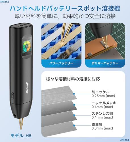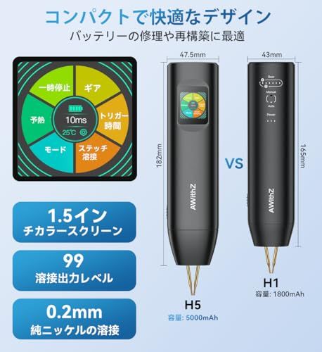 H5 アップグレード版 0.1-0.3mm バッテリースポット溶接機 デュアルパルス出力 5000mAh 0.2mm 純ニッケル 7言語UI 99段階調整 DIYバッテリーパック製作用ポータブルスポット溶接機t 3336113c