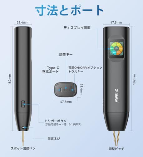 スポット溶接ペン不要、一体型設計:電源と溶接ペンが一体化。外付けの溶接ペンは不要。片手で簡単に操作できるよう設計されており、家庭や屋外での使用に最適で、プロやアマチュアのスポット溶接機として最適です。重量200g、長さ7.17インチ、幅1.87インチのこのスポット溶接機は、非常に軽量でコンパクトです。