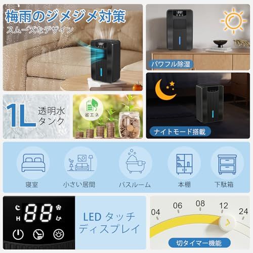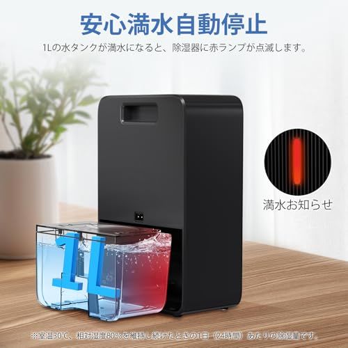 除湿機 小型 除湿器 1000ml大容量 卓上 ぺルチェ式省エネ じょしつき 強力除湿 梅雨|カビ|結露|湿気対策 抗菌フィルタ付き 満水自動停止4|6|8|12|24 H切タイマー 7色ランプ 湿気取り PSE認証取得済み コンパクト ブラック 父の日 母e