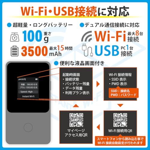 インスタントWi-Fi T8 1年間 100GB 自然故障き データ通信回線付き ポケットWiFi モバイル ワイファイ ルーター USB通信対応 契約なし 月額なし 買い切り 返却不要 プリペイド型 有効期間365日間 追加ギガチャージ d9914e87
