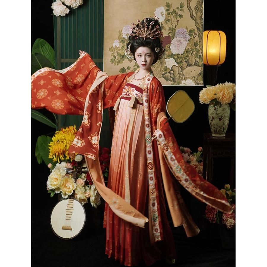 漢唐古典チャイナ服 レディース 唐時代 豪華 宮廷 漢服 振袖羽織付き 豪華 中華衣裳 中国古代服装 華流 中華ドラマ 皇后 貴妃 コスチューム