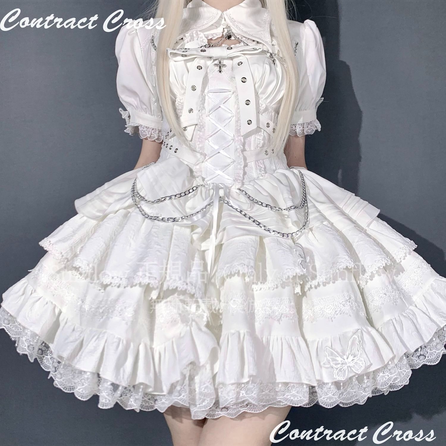 オリジナルロリータ ゴスロリ ロリータ 契約十字JSK ゴシック&スイート ワンピース 単品 ブラック ホワイト ピンク ブルー パープル ゴシックロリータ イベント用 プレゼント CJS1212P054