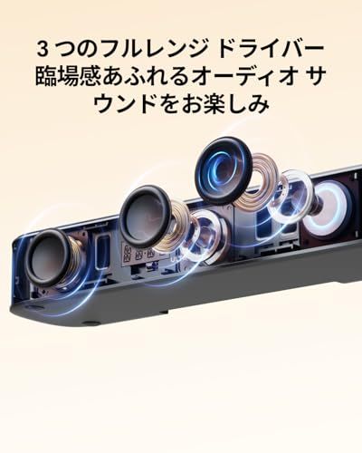 【BassMX搭載サブウーファー】サウンドバーには、低音を強化するBassMX技術を搭載した4インチ有線サブウーファーが付属しています。最適化された磁気回路と振動板により、深みのある豊かな低音を実現します。迫力のある低音に包まれ、一つ一つのビートの衝撃を体感してください。