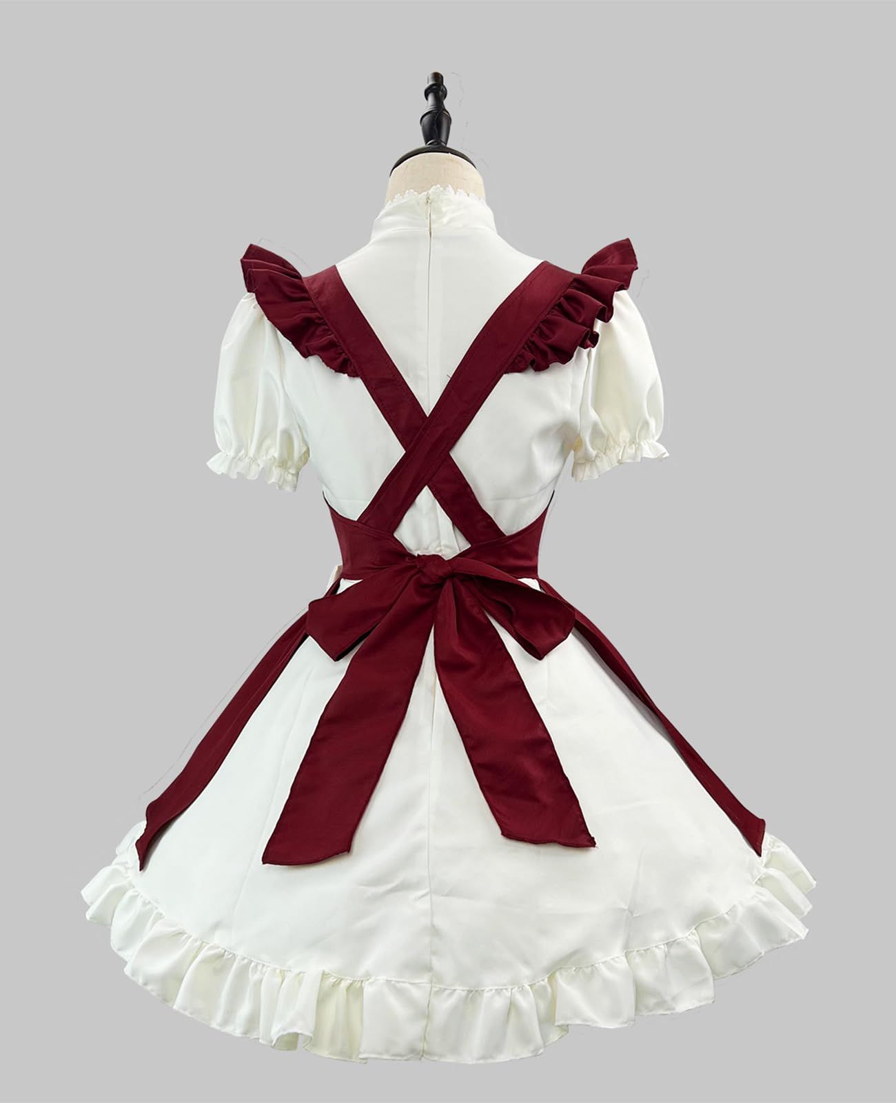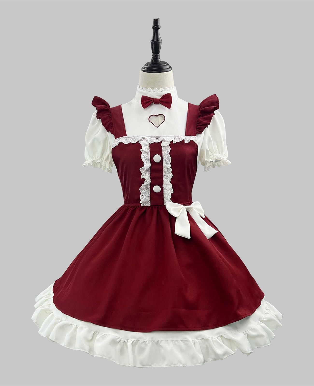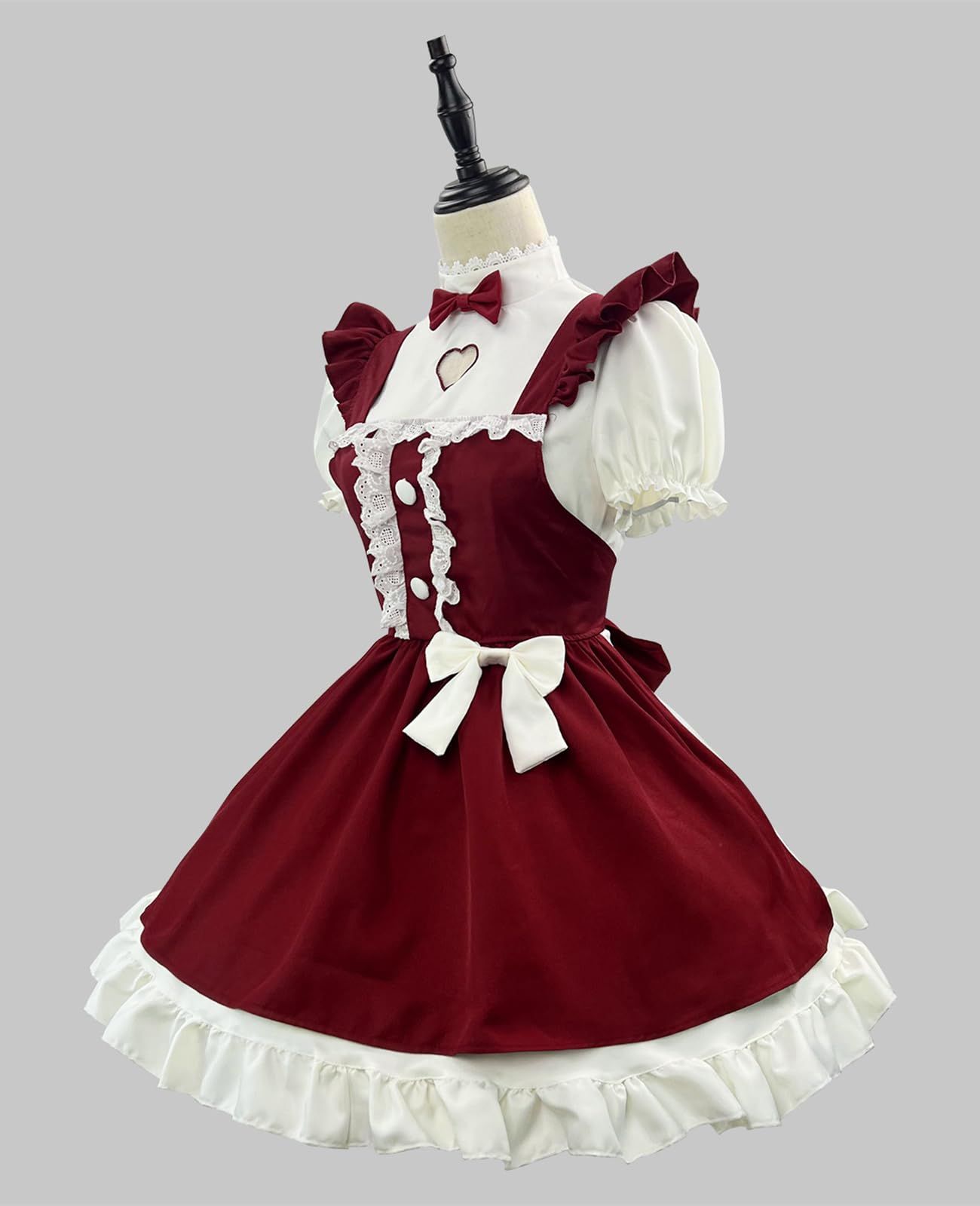 CR ROLECOS レッド メイド服 大きいサイズ レディース 可愛い コスプレ 衣装 ヴィンテージ ドレス リボン レース レトロ 3XL 4XL 5XL 赤 秋冬 写真用 大人 サンタ ワンピース クリスマス コスチューム タイプ 4 XL