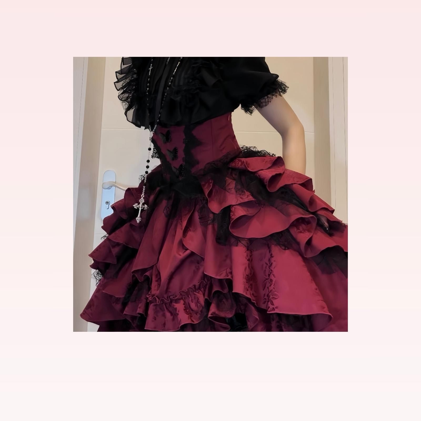暗黒ゴシック 吸血鬼伯爵風 ロリータセットアップ シャツ 取り外し 袖 提拉スカート 黒 白2色展開 ナイチンゲール少女風 ゴスロリ・ロリータ