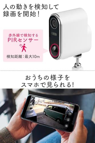 サンワダイレクト ネットワークカメラ 屋外 バッテリー式 Wi-Fi 防塵防水IP65 夜間撮影 動体検知 相互音声会話 SDカード録画 スマホ通知 ホワイト 400-SSA006 c0f15fc2