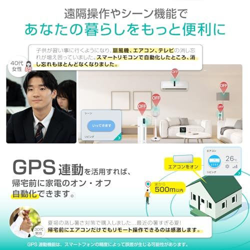 【据え置きにも壁掛けにも対応し設置も簡単】 設置方法は据え置き/壁掛けの両方に対応。 設置場所のすすめ: (1)家電とeRemote6の間に遮蔽物がない場所 (2)Wi-Fiルーターから遠い場所を避ける (3)直射日光や強い光が当たらない場所 動作が不安定な場合は、上記を参考に設置場所を変更してみてください。