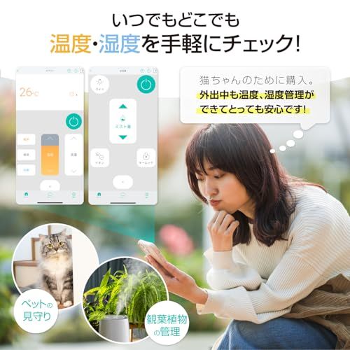 【温湿度センサーで室内環境をスマートに管理】 高精度センサーが室内の温湿度をリアルタイムで測定。HomeLinkアプリと連携すれば、温湿度の変化に応じてエアコンや加湿器などの家電を自動で制御可能です。ペットの熱中症対策や観葉植物の管理、高齢者の見守りにも大活躍します。