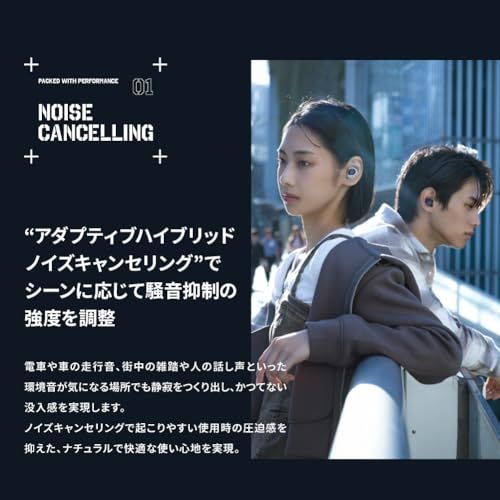 アダプティブノイズキャンセリング:周囲の騒音を自動で調整するアダプティブノイズキャンセリングを搭載。電車内や街中でも没入感のあるリスニング体験を楽しめます。