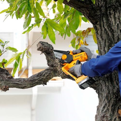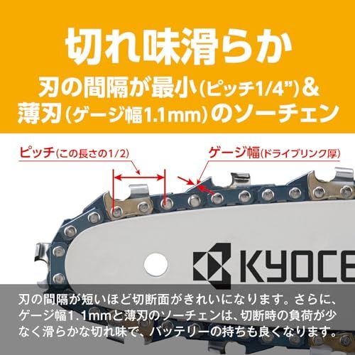 京セラ Kyocera 旧リョービ 充電式ハンディチェンソー 本体のみ BHCS-1810 663400B ハイパワーモーター搭載で硬い枝でも止まらない 片手で使える 切り口が滑らかで切断時の負担も小さい 安全性を考慮した2つの f4926491