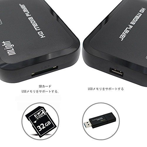 InLight メディアプレーヤー 最大解像度 3840 2160p 30fps SDカード USBメモリ対応 動画 音楽 写真再生 HDMI VGA コンポジット コンポーネント出力対応 テレビ再生 写真や動画をテレビで再生 付属HDMIケーブル