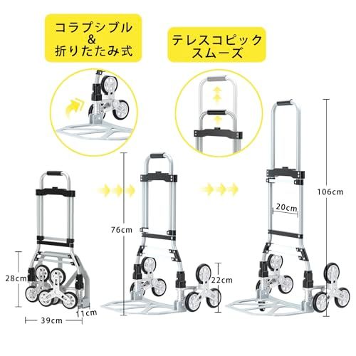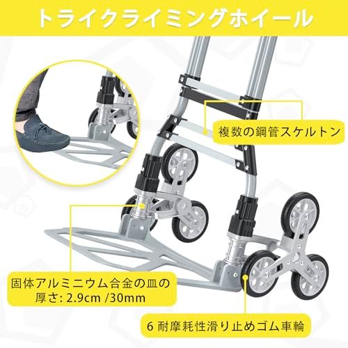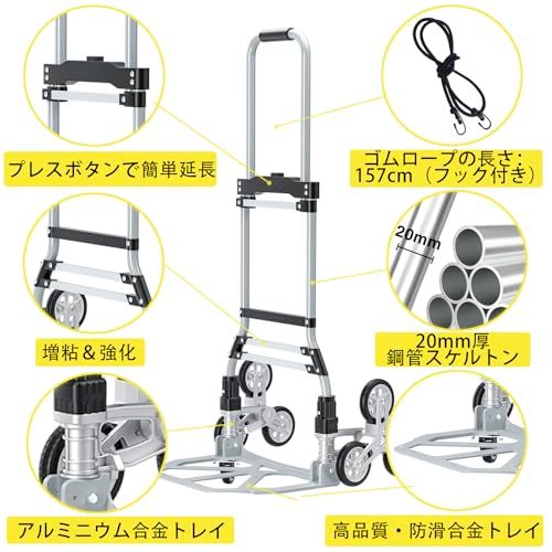 118kg階段登りカート 階段用アルミトロリー台車 折りたたみ式ハンドトラック台車 ミュートホイール付き食料品ショッピングカート 伸縮式ハンドル 移動用ゴム車輪 買い物 防水収納袋 ゴムロープ両端フック付 荷物運搬 業務用キャリーカートso 6047c5a9