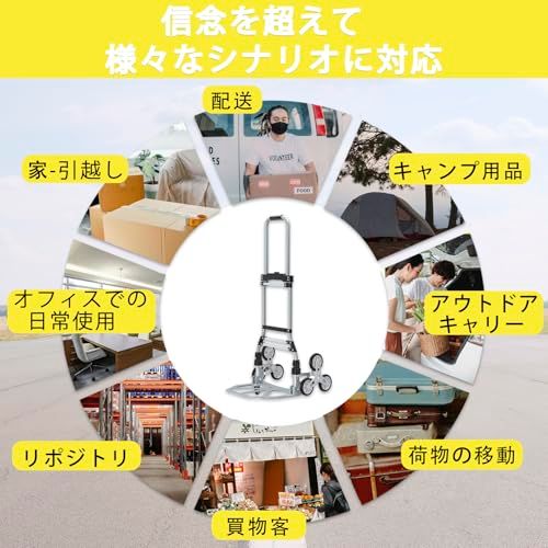 【使い方は簡単】荷物を底板に置き、バンジーコードで固定します。足で底板を押し、カートをゆっくりと傾けます。パッケージ内容:1台階段昇降カート(6輪)とバンジーコード1本、1 x防水バッグ 大容量の収納バッグは持ち運びや収納が簡単で、日常の必需品を入れるのに最適です。。ご家族、ご友人、お子様、同僚への誕生日プレゼントに最適です。男性、女性、ご年配の方にも最適です。