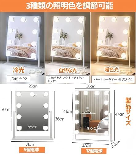 【9個/12個LED電球な大いミラー】厳選輸入LED電球、寿命は最大3万時間。発光部は特殊処理を施し、高輝度でありながらまぶしくない。ドレッサーや化粧台に設置し、ハリウッドな雰囲気でメイクをより快適にさせます。