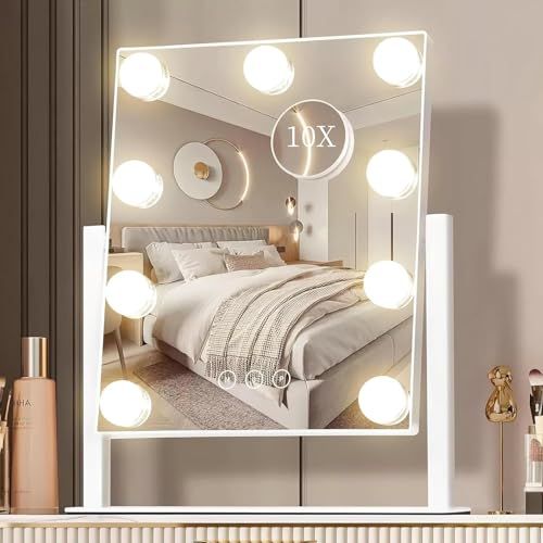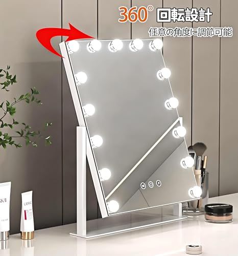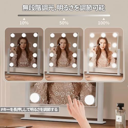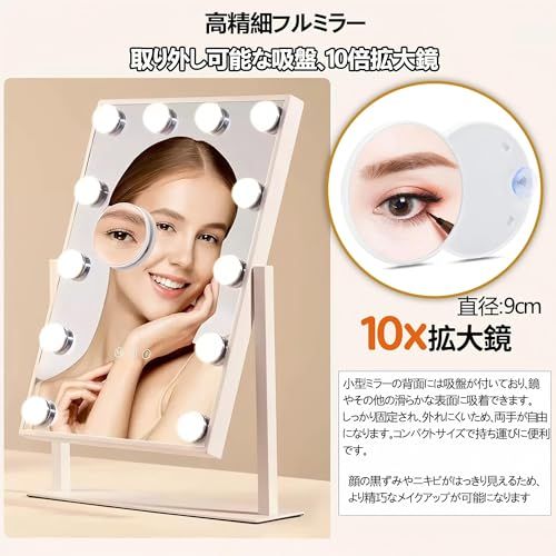 女優ミラー 卓上ミラー ライト付き 化粧鏡 大きい ハリウッドミラー 10倍拡大鏡付き 9個LED電球付き 三色照明モード 明るさ調節 360度回転 給電式 9個電球 t 9e1f1983