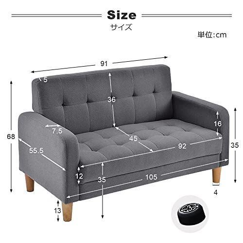 「スペースを取らないコンパクト設計」座面幅約108cmの2人掛けソファー。限られた場所でも無理なく置けるのでひとり暮らしにもオススメ。