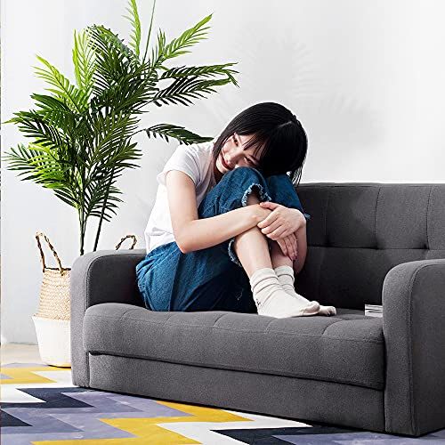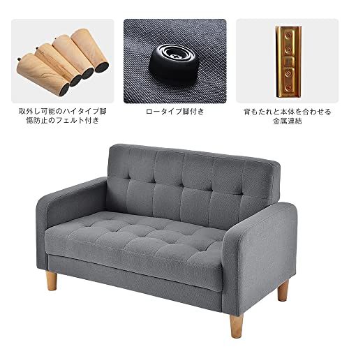 オーエスジェイ OSJ ソファー 2人掛け 肘付き 天然木脚 幅約110cm 簡単組み立て 2WAY ファブリック おしゃれ 新生活 北欧スタイル ソファベッド グレー 62*113*38ma