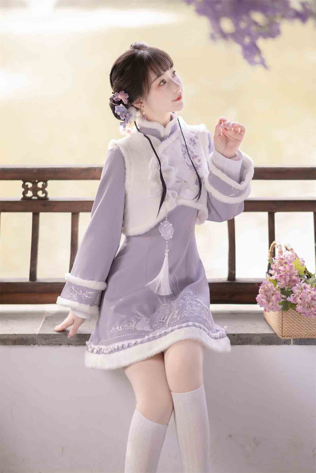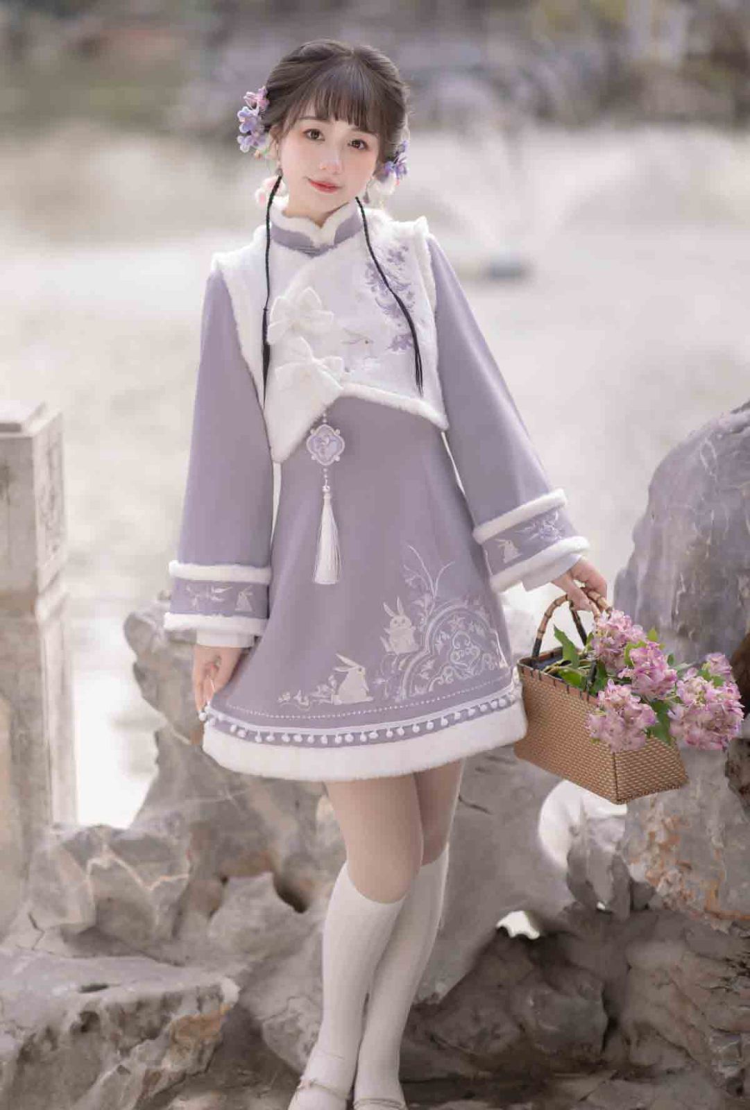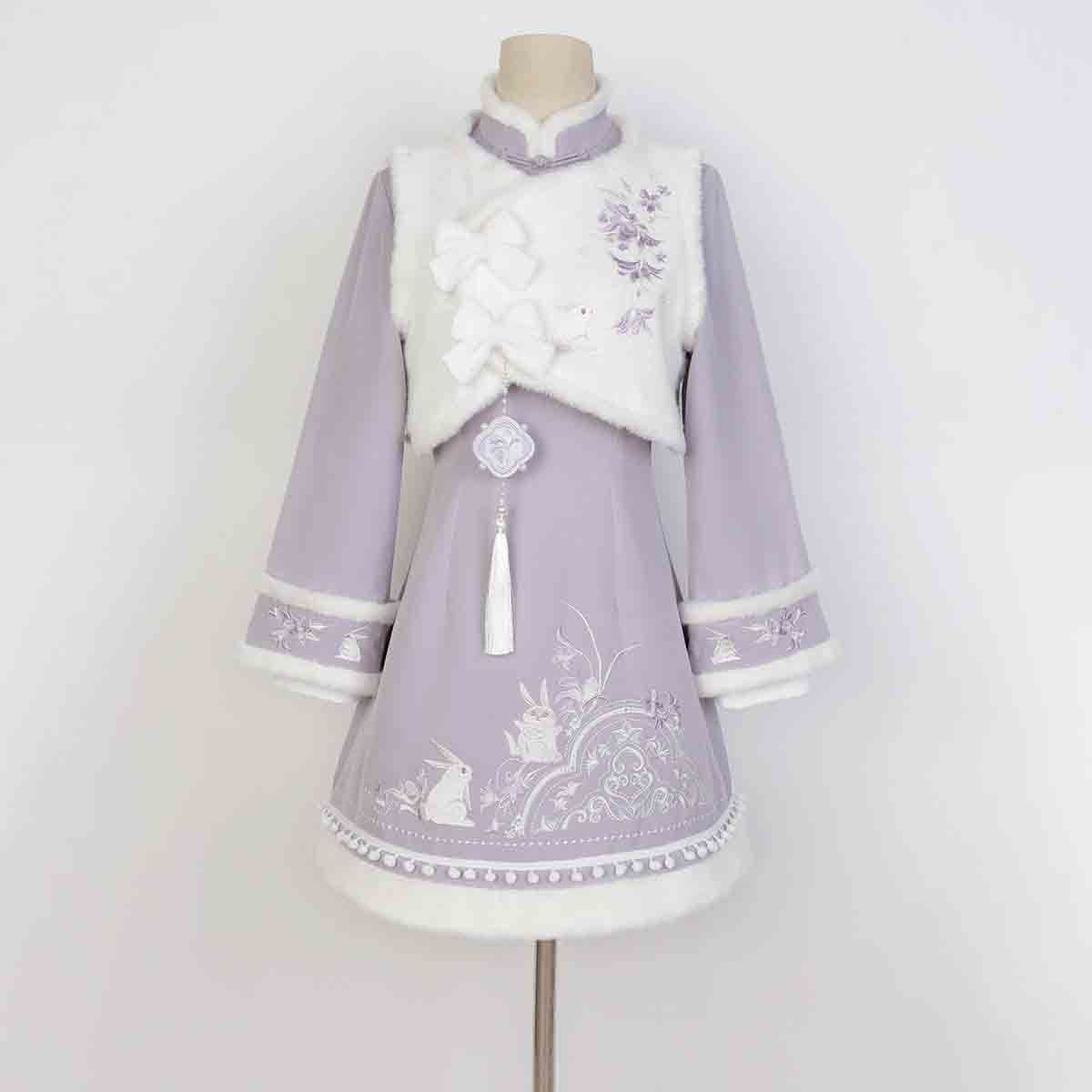 紫雲兎 漢服 レディース 漢元素 ベスト ワンピース 秋冬 セット 中華風 コーデ お出かけ 撮影 イベント デート ふんわり暖かい甘めスタイル ガーリー清楚系 フェミニン 華やか 中華 ロリータ風コーデ
