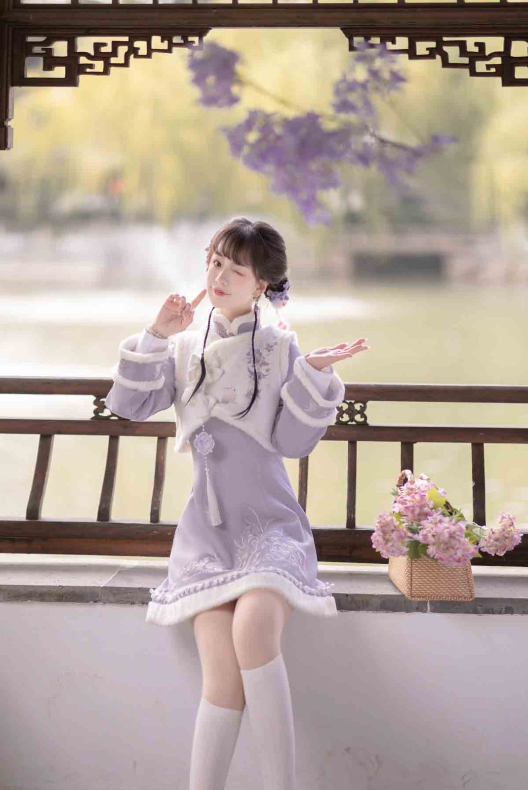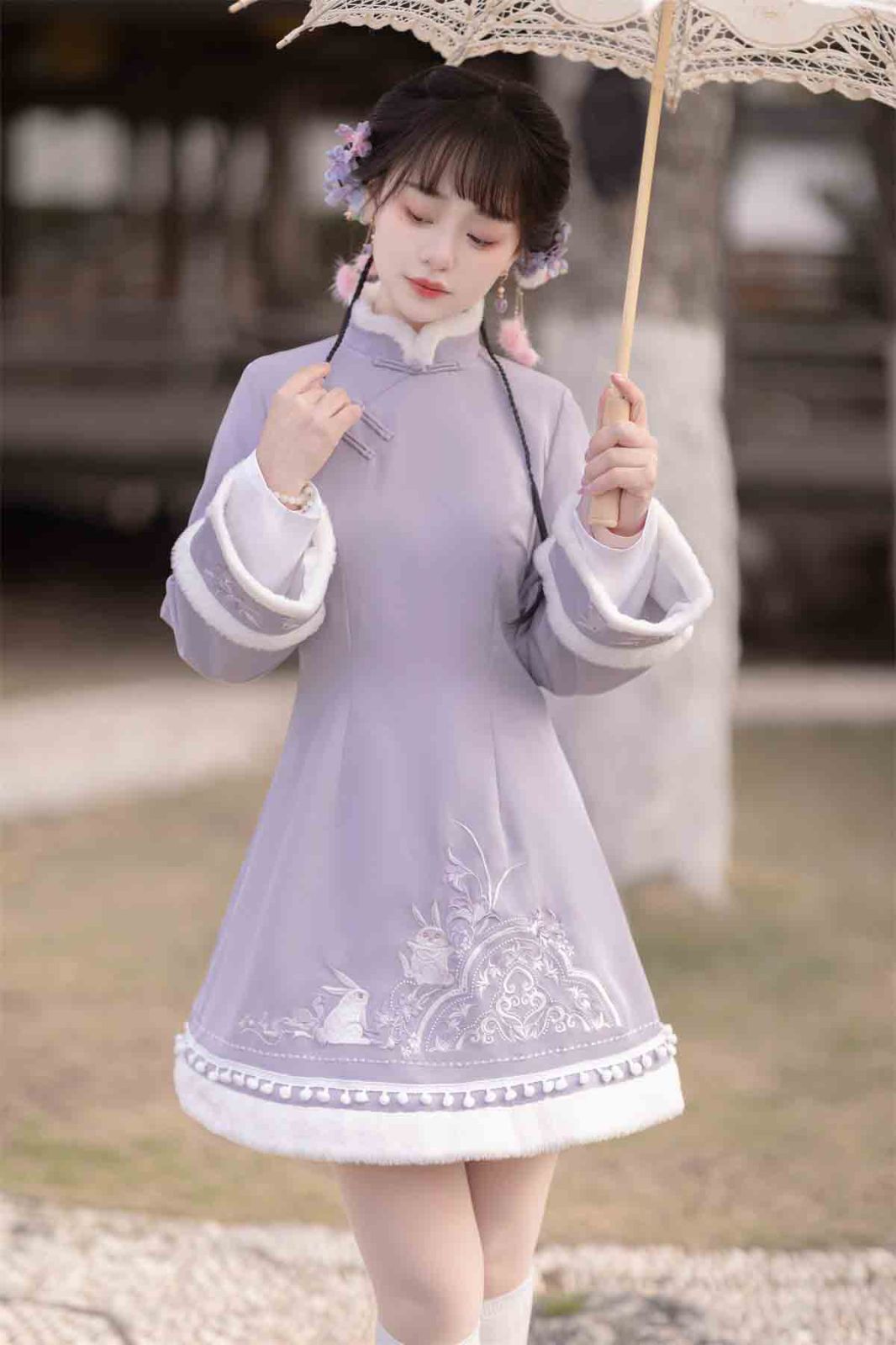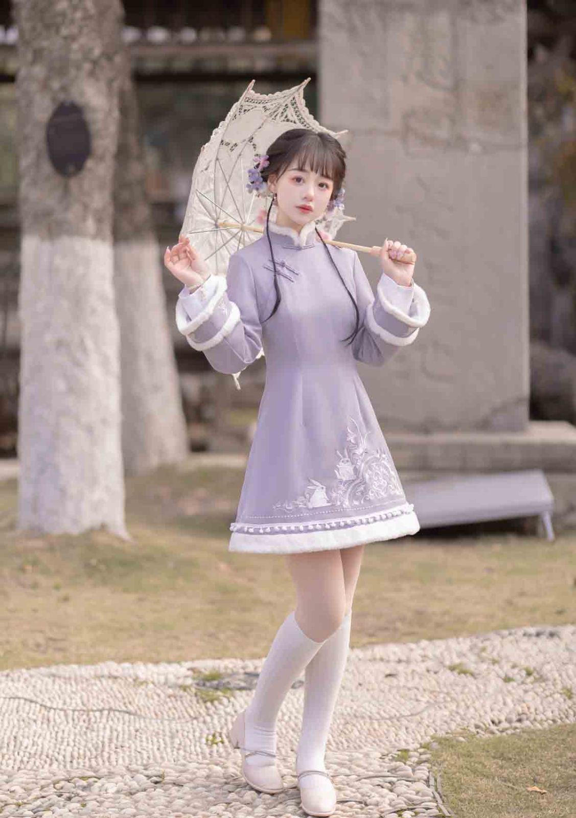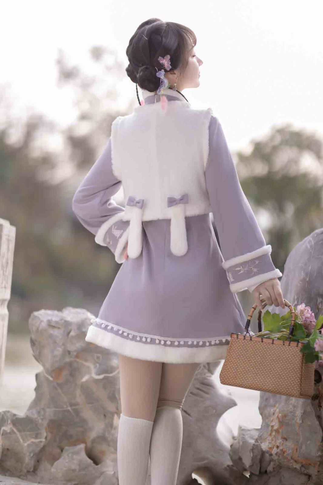 紫雲兎 漢服 レディース 漢元素 ベスト ワンピース 秋冬 セット 中華風 コーデ お出かけ 撮影 イベント デート ふんわり暖かい甘めスタイル ガーリー清楚系 フェミニン 華やか 中華 ロリータ風コーデ