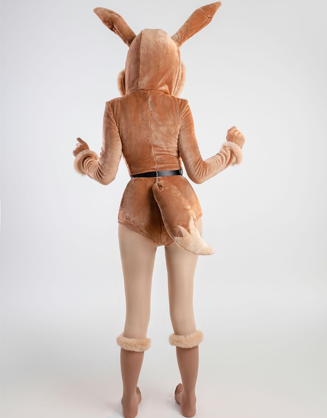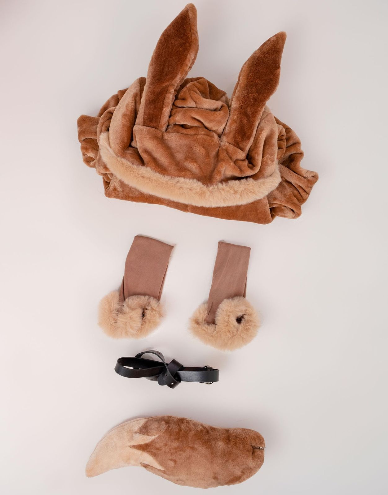 [Mobbunny] レディース 美女 コスチューム コスプレ コス アニメ ゲーム ホームウェア パジャマ ボディスーツ レオタード フーディー 動物風 猫 キツネ モンスター ビースト かわいい 萌え ふかふか キュート 衣装セット 仮装 変身 変装 ブラウン