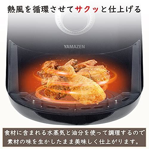 山善 ノンフライヤー 2.2L 電気フライヤー 食洗器対応 1~3人用 油なし エアーフライヤー 油で揚げないヘルシー調理 卓上 レシピブック付き ブラック YAF-C120 B m e2c98567