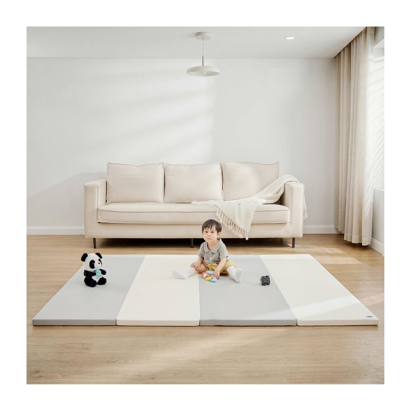 【多機能】赤ちゃんの成長に合わせて長期間ご使用いただける多機能マットです。使用時期が終わった後も、そのまま簡易ソファやトレーニングマットとして利用できるため、家族全員で活用することができます。さらに、耐久性があり、赤ちゃんが成長しても長く使用できるため、コストパフォーマンスも抜群です。トレーニングマットとして使うことで、お子様の運動能力を育むための良いサポートになります。シンプルでスタイリッシュなデザインは、どんなお部屋にも合わせやすく、生活空間に溶け込みます。