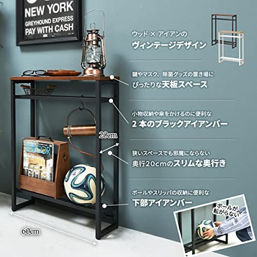 FunFun コンソールテーブル 玄関ラック 玄関テーブル スリムサイドテーブル オープンラック ホワイト ベージュ 木目調