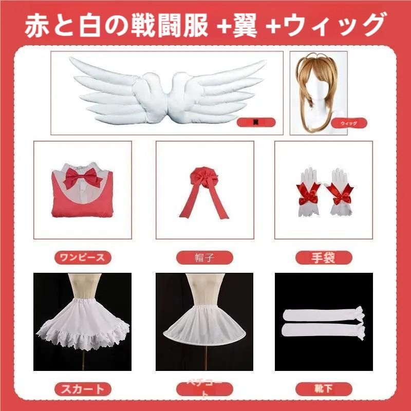 カードキャプターさくら コスプレ服 子供用 サイズ 赤白 戦闘服 コスプレ 二次元 アニメ 服装 文化祭 meilu51209