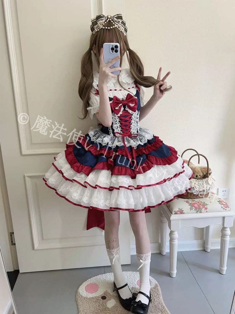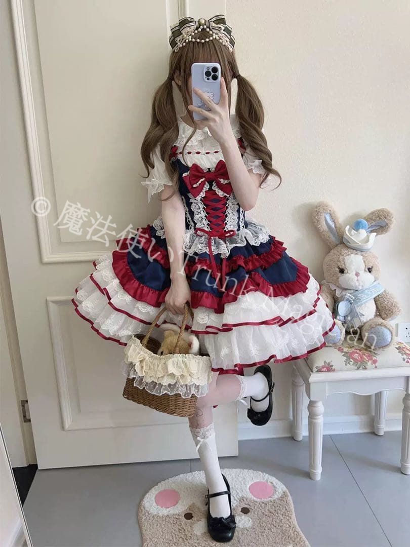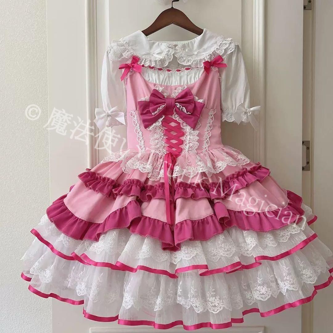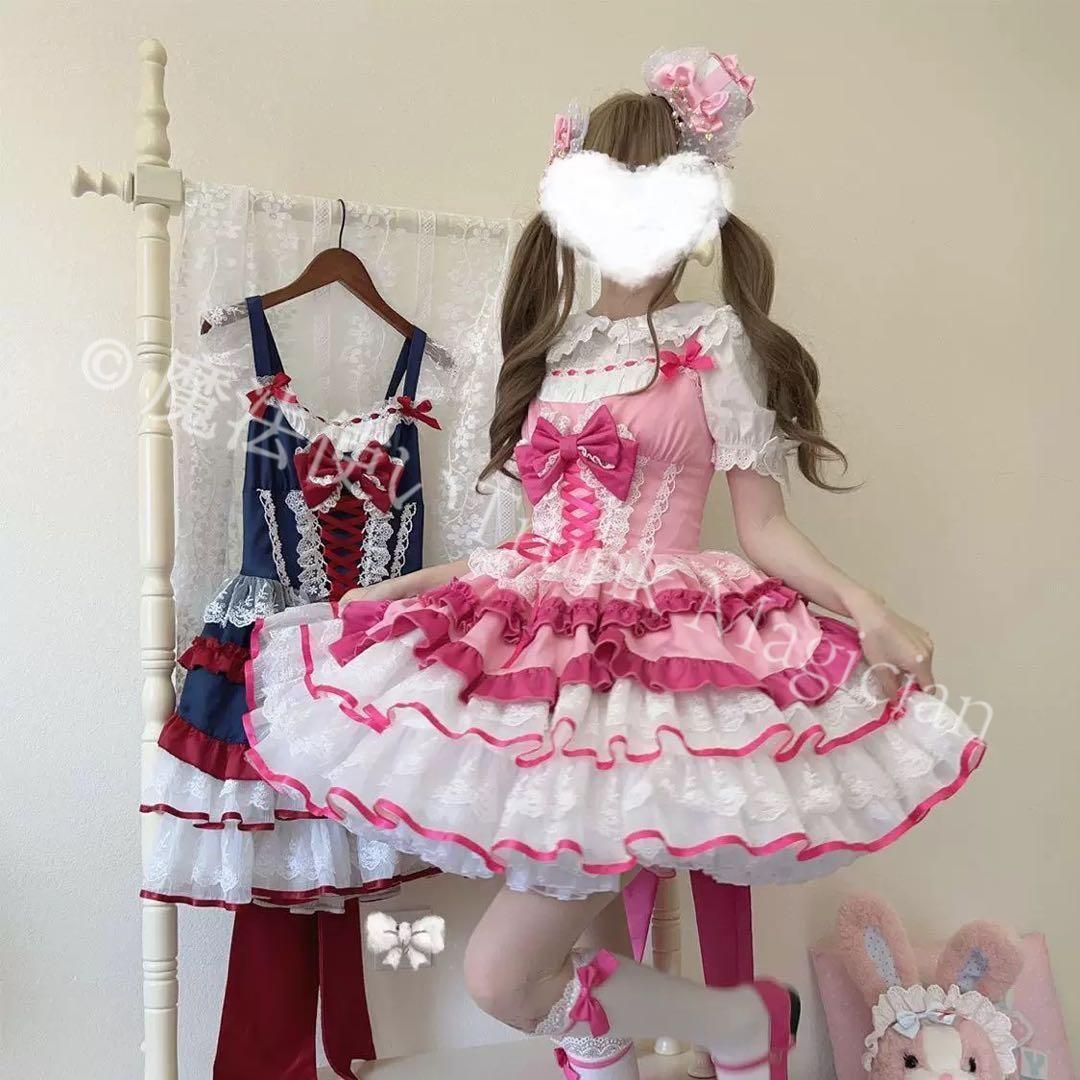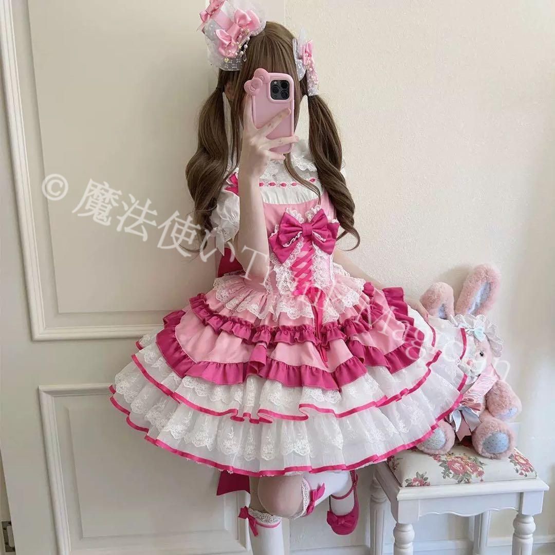商品詳細:ロリータファッションのジャンパースカート、リボンが可愛くお出かけや女子会にピッタリ。特に春や秋のお出かけに活躍すること間違いなし!おしゃれなひとときを彩る一枚です。