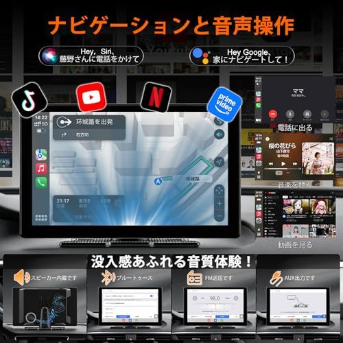 【ワイヤレス CarPlay/Android Auto 対応スマホとシームレス連携】 カーナビ本体は BluetoothWi-Fi デュアル接続を採用、初回手動ペアリング後は車に乗るだけで自動接続!iOS10 以降 / Android11 以降に対応し、ナビゲーション・音楽再生・ハンズフリー通話・メッセージ読み上げまで、Siri/Google 音声操作で実現。両手をハンドルから離さず安全ドライブを守り、高額な地図更新料も不要で、スマホの最新機能をそのまま車で活用