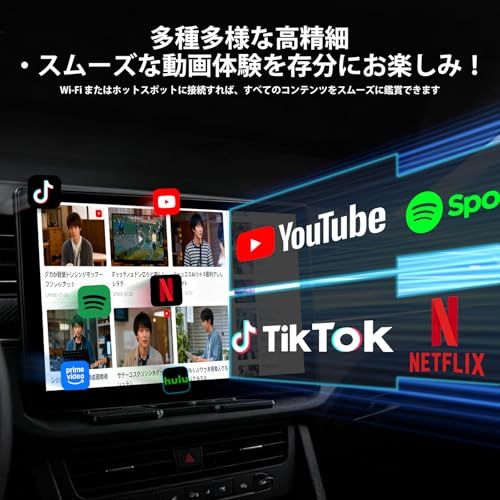 【高性能アンドロイドシステム搭載車内が移動型エンタメスペースに】 このディスプレイオーディオは高性能 Android システム(2GB RAM32GB ROM)を搭載、YouTube/TikTok/Netflix など人気ストリーミングアプリをプリインストール。スマホホットスポットに接続するだけで高清動画を視聴可能で、学校での待ち時間・キャンプの休憩・停車時のレジャーに最適!つまらない待ち時間が華やかに変わり、一人暮らしの通勤や家族ドライブも楽しさ倍増