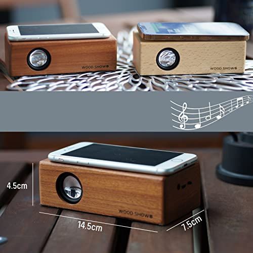 【スマホの音を増幅】スマホを上に置くだけで音を増幅します。充電式なので持ち運び簡単。どこにでもスマホからの音楽、通話など音を大きくし再生できます。本体がスマホの音を受け止め、内蔵アンプが増幅、二つのスピーカーから良い音が鳴ります。木の優れた音響特性を生かしてクリアで自然な音が出るように設計されています。不思議な誘導式拡張スピーカーです。【ご使用について】こちらの商品は携帯が発する電磁波を拾うためサーという音や高い音が携帯によっては発生することがあります。携帯のWiFi及びBluetooth電波を解除することで収まることがあります。