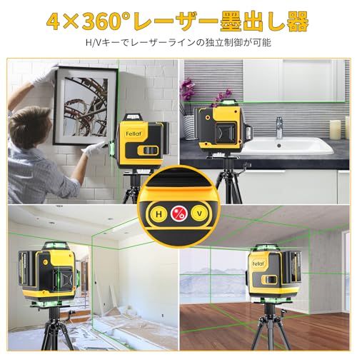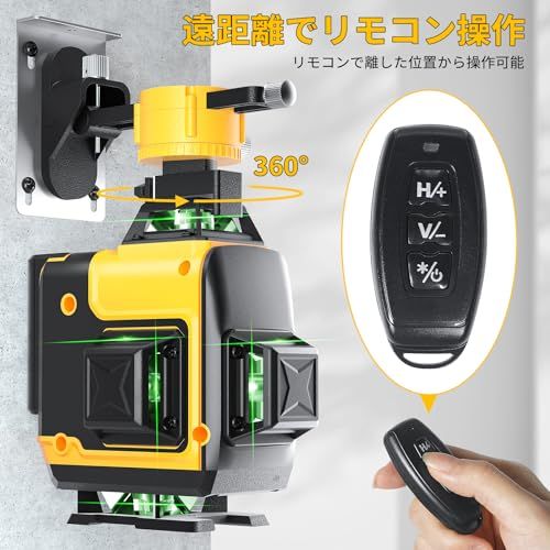 レーザー墨出し器 4x360° グリーンレーザー フルライン レーザーレベル 16ライン レーザー水平器 自動補正 高輝度 リモコン付き 屋内屋外兼用 受光器対応 日本語取扱説明書付 762f47b9