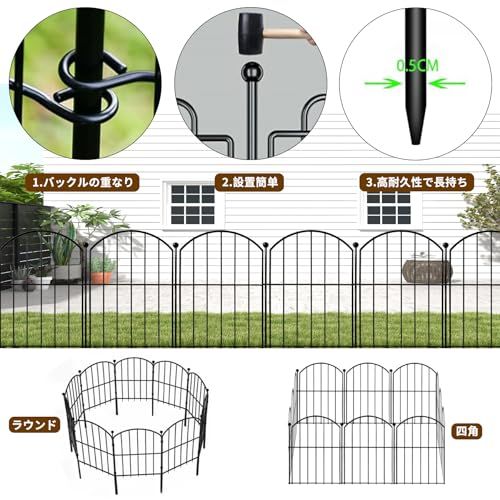 【耐久性に優れ、長期使用に耐える】このフェンスは頑丈なアイアン製品で、木製のものより経年劣化が少なく、防錆処理が施されているため、錆に強く、長期間使用しても美しい外観を保ちます。屋外の過酷な環境でも、安心して使用することができます。