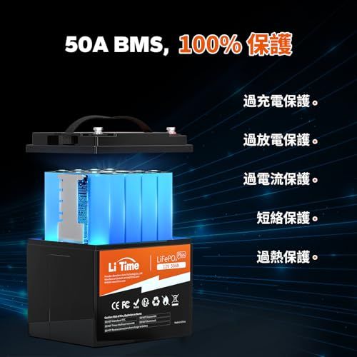 【安全性が高くて8倍の寿命】LiTime LiFePO4リチウムバッテリーは自動車グレードのLiFePO4セルを採用し、エネルギー密度が高く、より安定した性能と50AのBMSを持っています。鉛蓄電池の200500サイクルと3年の寿命に比べ、当社のリチウムバッテリーは4000回以上のディープサイクルと10年の長寿命を持つから、当社の12V50Ah LiFePO4バッテリー1個の寿命は、12V100Ah鉛蓄電池3個の合計寿命と同等になり、コスパは優れています。