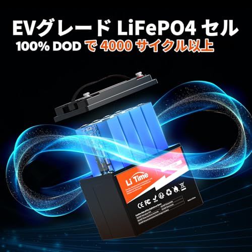 LiTime 12V50Ahリン酸鉄リチウムイオンバッテリー 640W出力電力 4000回以上サイクル 多重保護機能付き50AのBMS コンパクトで軽量化 LiFePO4バッテリー 鉛蓄電池の置き換え ポータブル電源自作 アマチュア無線 防犯 2b92d8de