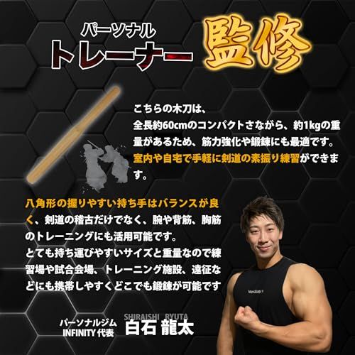 迅速に発送 パーソナルトレーナー監修 素振り用木刀 重量約1.0kg 剣道 木刀 1000g 素振り 室内用 筋トレ 短い すぶり用木刀 稽古用 鍛錬 フリセン 全長60cm 1de512ed