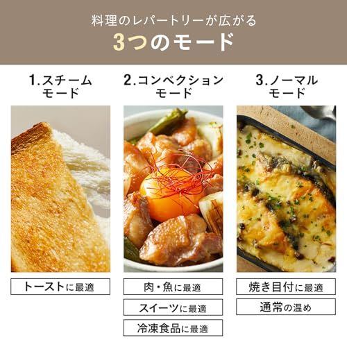 【機能】定格消費電力:1,350 W 角食パン4枚焼き、加熱モード(スチーム、コンベクション、ノーマル)、温度調節、タイマー30分
