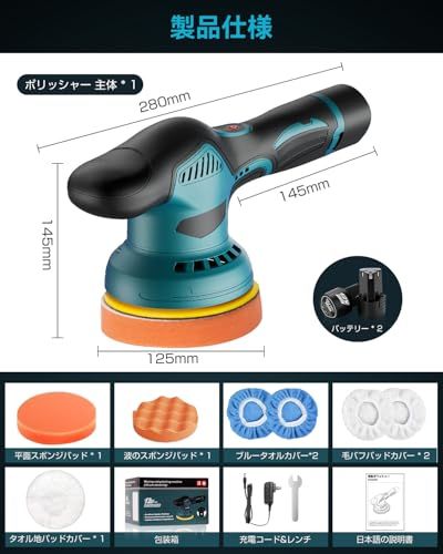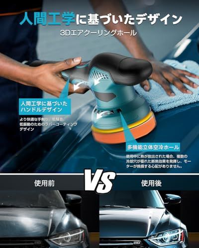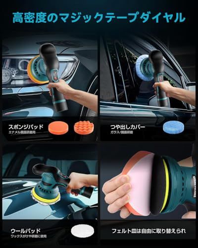 【8段変速2800RPM 5500RPM】この電動ポリッシャーは1 8段の変速ギアを備えています。スピード調節はボタン式の設計を採用して、簡単で正確にデュアルアクションポリッシャーの回転数を調節することができます。1回長押しして作業を開始し、1回押すごとに回転数が一段ずつ上がります。最低2800回/分から最高5500回/分まで調節できます。異なる製品と使用のニーズに応じて適切なギアを選択することができ、心配する必要はありません。低回転または高使用効果に影響を与えます。車の研磨、ワックスがけ、木工、金属研磨、塗装?落、金属製品の錆取りなど様々な場面で使用できます。